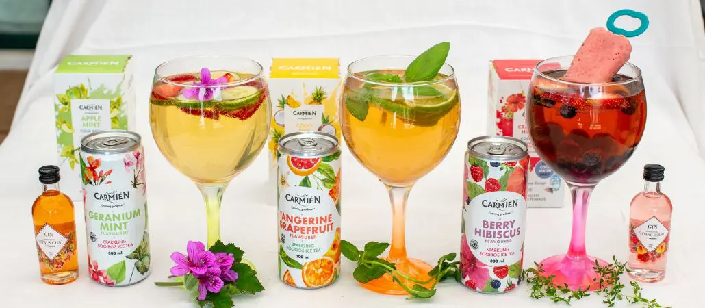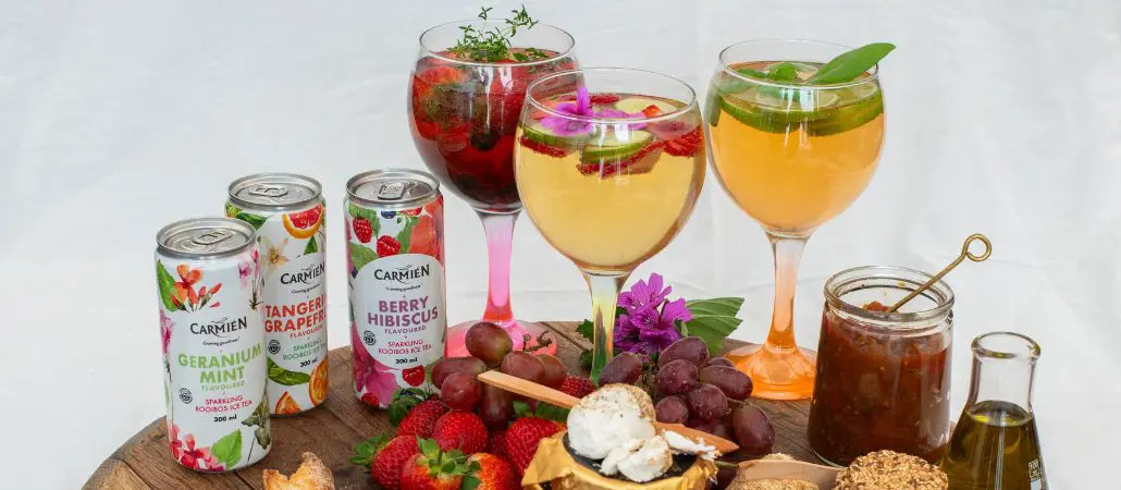 Make sure to stock up on Carmién’s range of sparkling rooibos ice teas and cold brews and you are sorted to impress with a variety of refreshing drinks.