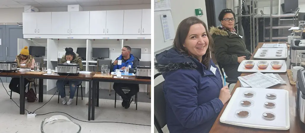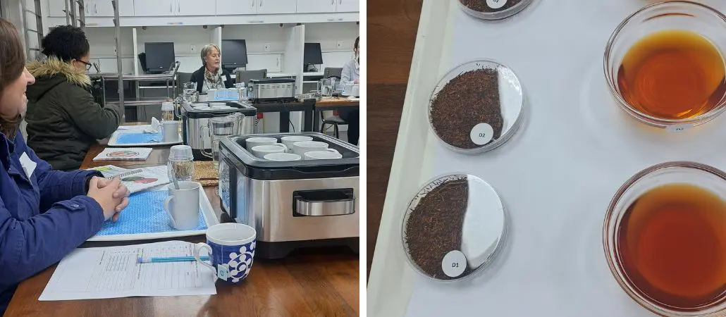 In our quest to continue supplying rooibos of exceptional high standard and quality, it is important to train all staff involved on an annual basis. Regular training helps to improve our internal grading and tasting protocols. We recently sent our entire quality and grading panel for a Sensory Workshop on the quality assessment of rooibos. This was presented by the Stellenbosch University Food Science Department under guidance of Dr Brigitte du Preez and Dr Erika Moelich, both project researchers at the Food Science Faculty. They have many years’ experience in the sensory evaluation of foodstuffs and have also done much research on a variety of rooibos health topics.