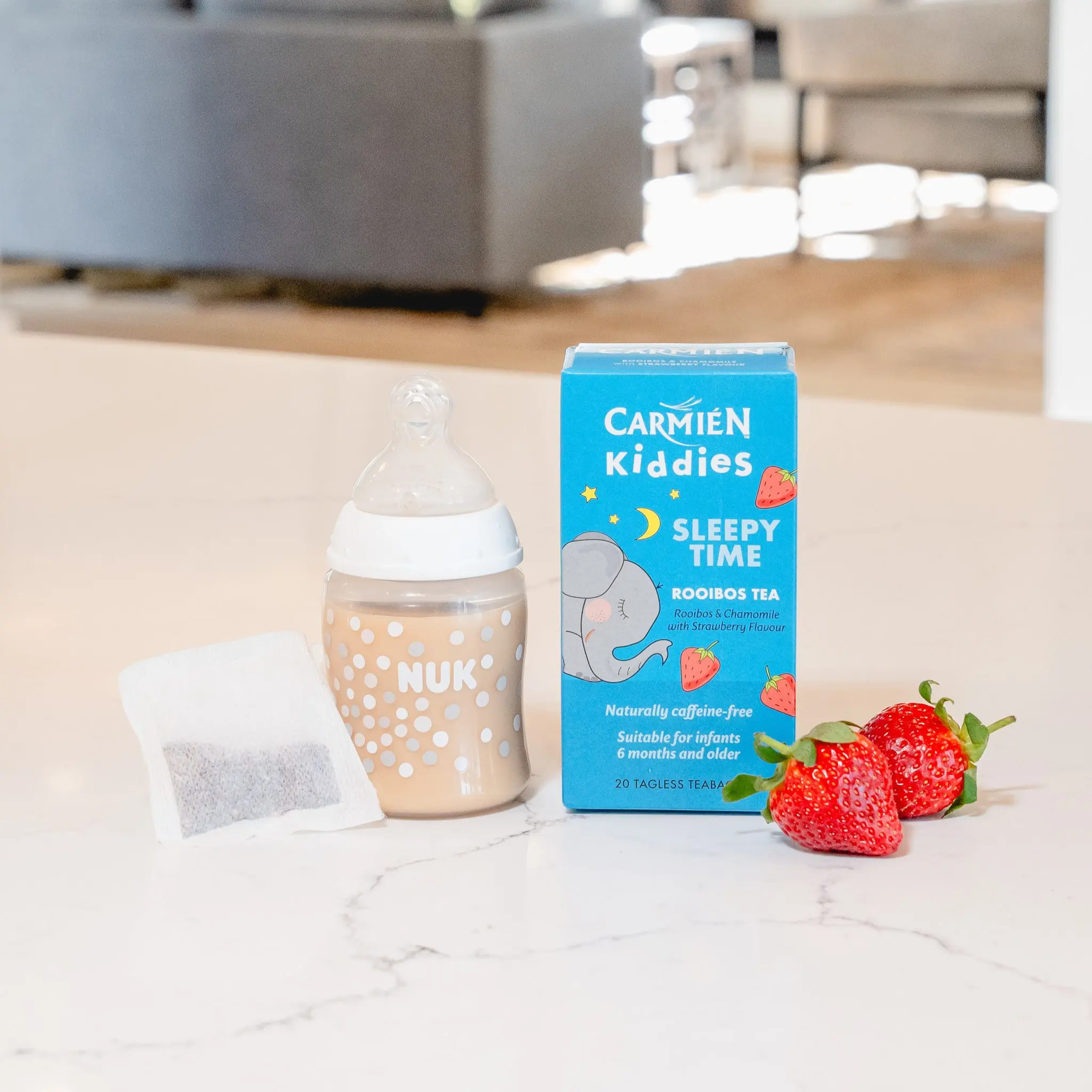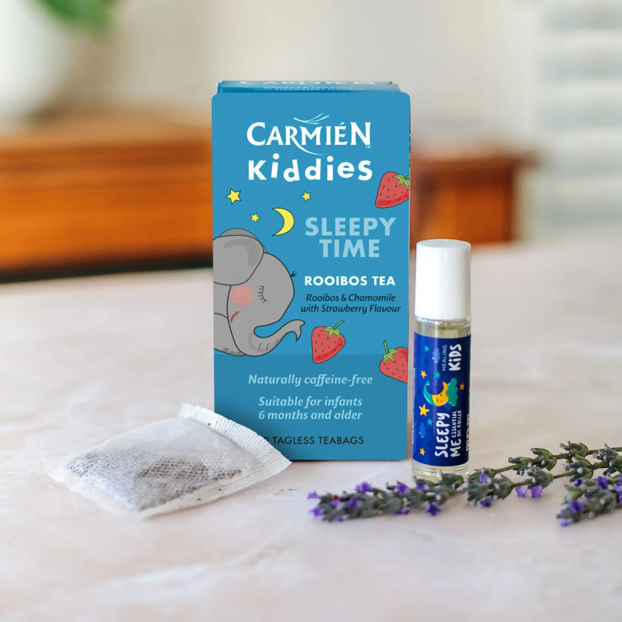 Carmién Sleepy Time is specially formulated to soothe and relax for a good night’s rest. Natural strawberry flavour gives a delicious taste and lovely aroma. Smells just like sweeties! Rooibos is naturally soothing on the nervous system and therefore excellent for hyperactive children. Camomile is long known as a safe, calming herb.