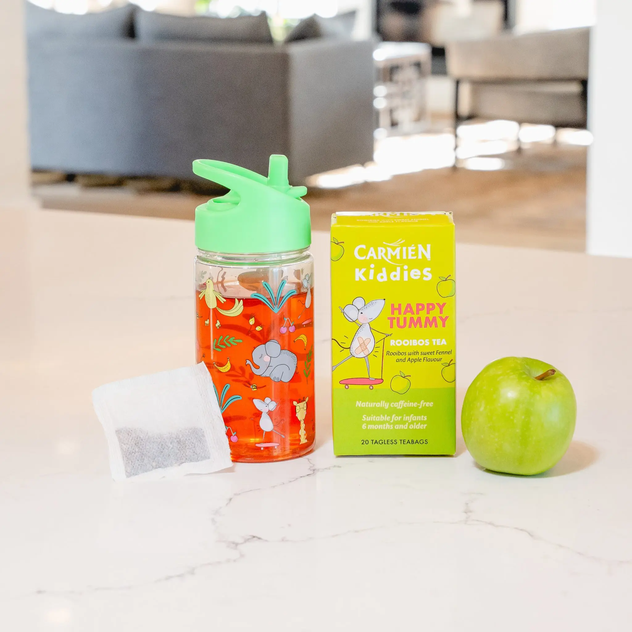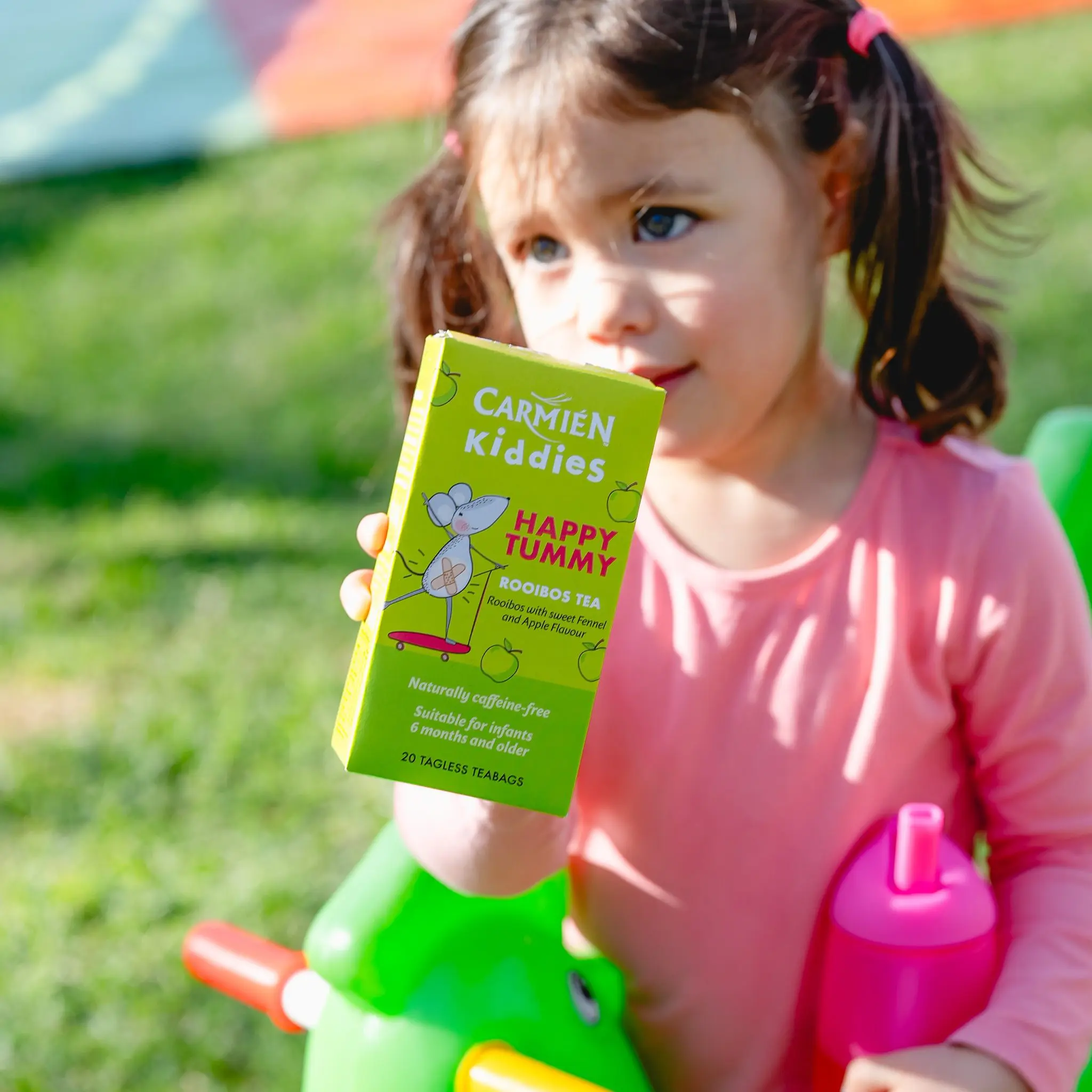 Carmién Happy Tummy is a safe, effective, digestive blend. Rooibos with ground flaxseed and fennel may help to gently relieve constipation. Rooibos is naturally soothing and helps to relieve stomach cramps. Very tasty with a refreshing apple flavour. Perfect hot or cold. Note: Ground flaxseed may give the tea a murky appearance.