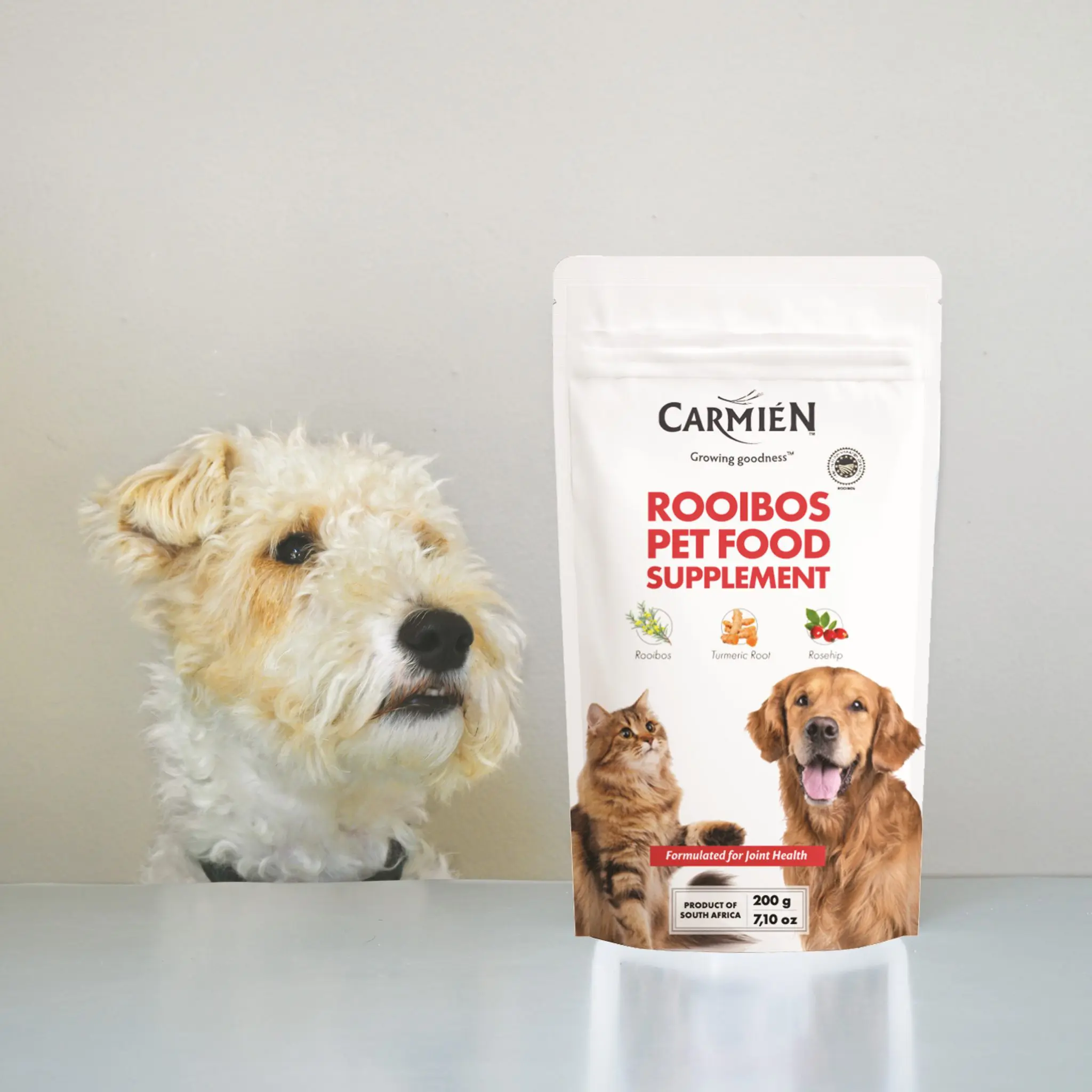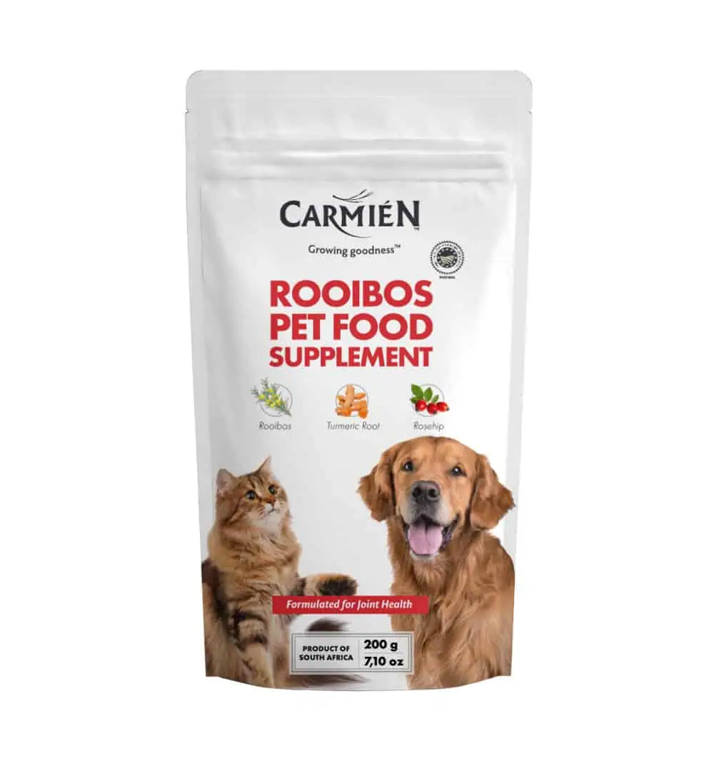 Carmién Pet Food Supplement is specifically formulated to improve and maintain joint health. It is a powerhouse blend of rooibos and superfood botanicals, turmeric and rosehip, all high in antioxidants and minerals with anti-inflammatory properties with a pleasant beef flavour.