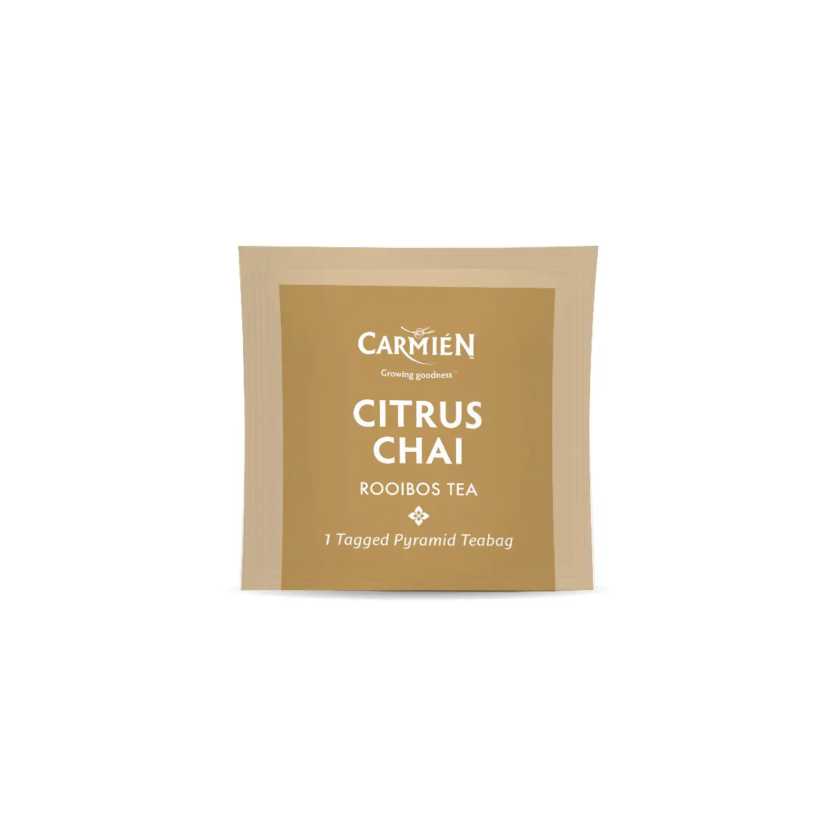 Carmién Citrus Chai is a flavoursome combination of rooibos and a lightly spicy, chai blend. Visually pleasing in beautiful pyramid teabags with calendula flower petals adding a yellow colour. An excellent tea to serve with wine and food.