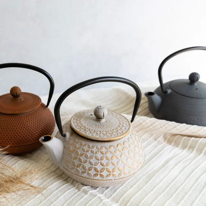 A stylish cast iron teapot in the Japanese tradition – tempered, durable and excellent at retaining heat, with a strainer for loose leaf tea.