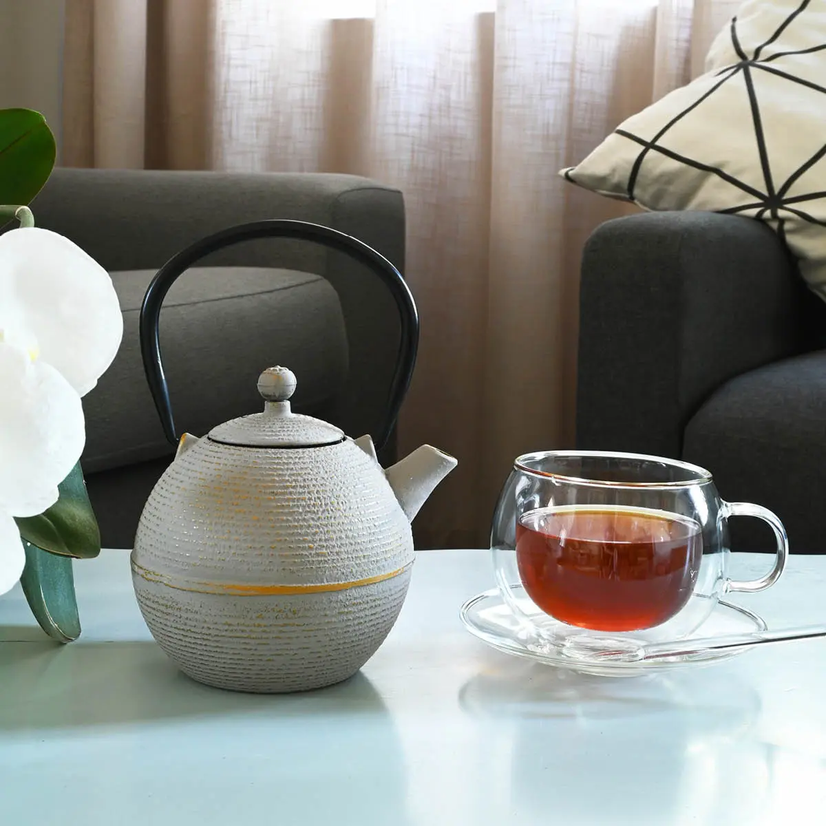 A stylish cast iron teapot in the Japanese tradition – tempered, durable and excellent at retaining heat, with a strainer for loose leaf tea. Fashionable trendy in beautiful colours, perfect for your table. Match your teapot to your mood. Designed to impress your guests. Not suitable for stovetop or gas stove use. Use our cast iron pot stand to protect your table and linens. Follow our easy care instructions here.