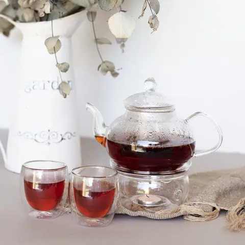 Our glass teapot & strainer, burner and 2 double-wall cups are the perfect way to complete your tea experience. An ideal gift!