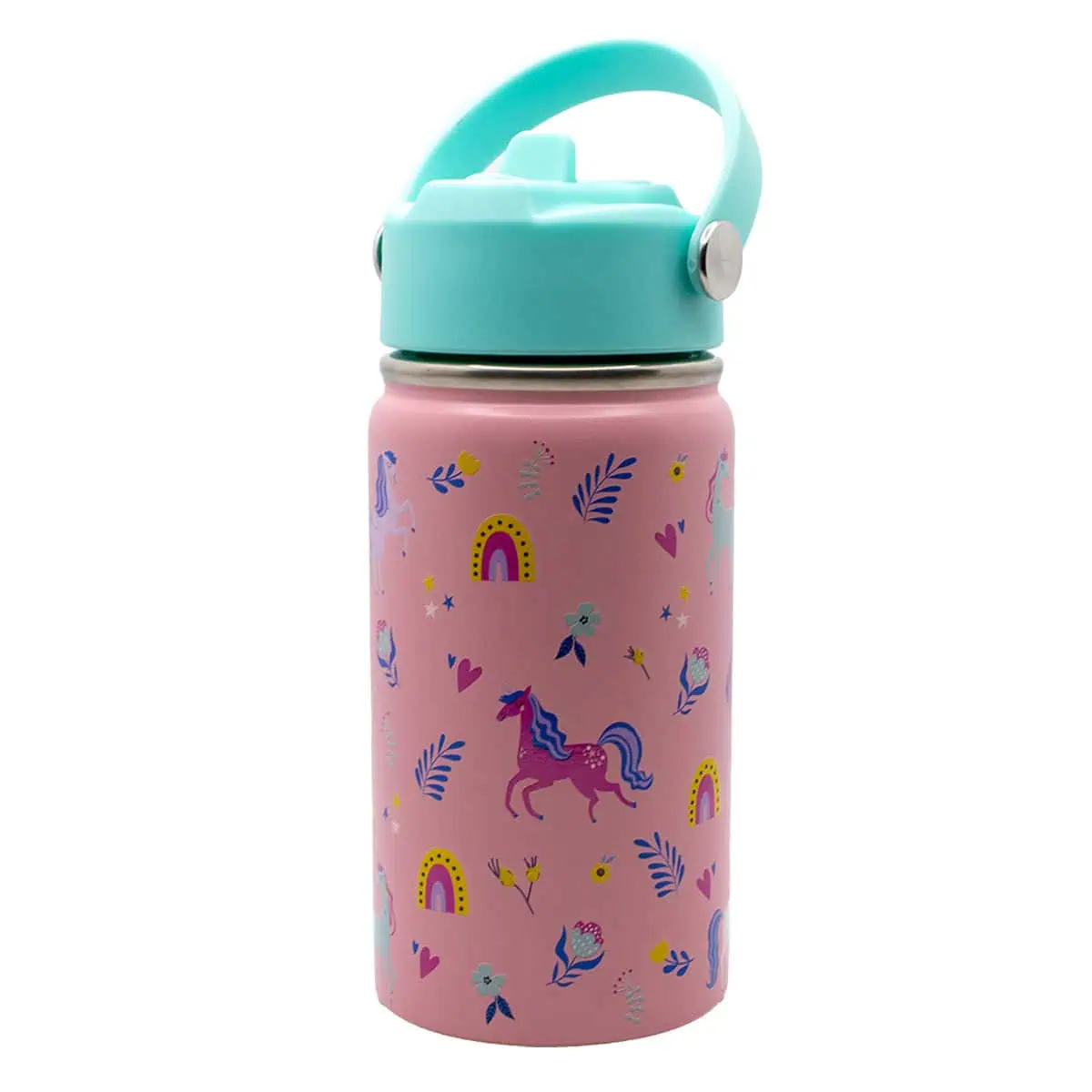 This pink bottle is made for little unicorn lovers. Covered in cheerful unicorn illustrations, it’s perfect for cold rooibos drinks throughout the day. The flip straw design makes it easy to sip, while the secure lid seals tight to stop leaks. Lightweight and fitted with a carry handle for little hands on the move.