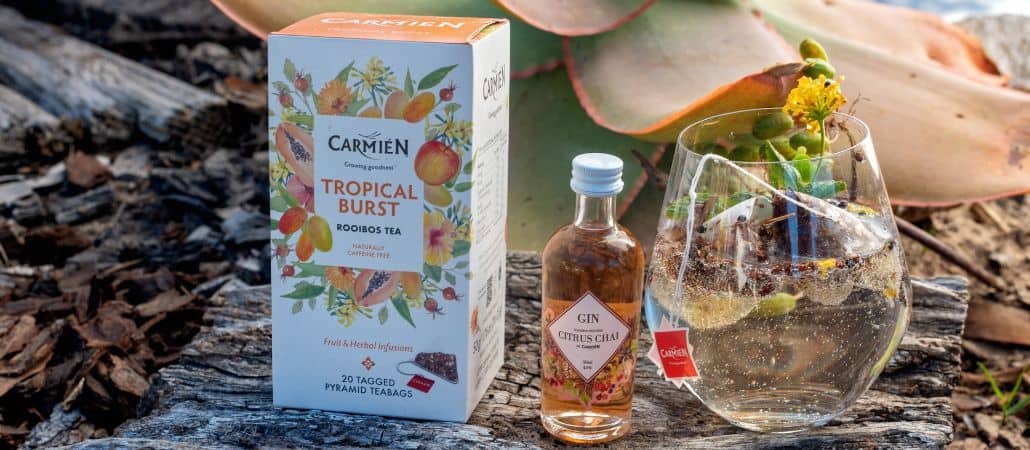 The West Coast’s distinctive flora serves as inspiration for unique cocktails made with Carmién’s Floral Berry and Citrus Chai gins. Adding a bag of Carmién’s Pyramid Rooibos tea blends or even a Cold Brew one makes for an interesting twist and an unforgettable G&T experience. Ideal for the Festive season.